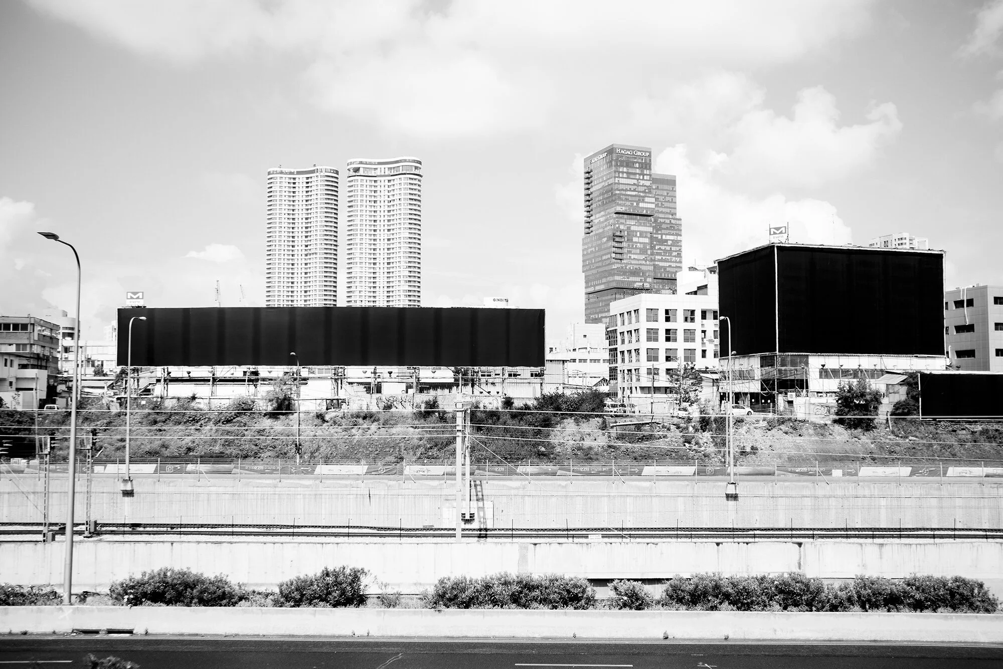 A few months ago, as cities across the world went into lockdown, once bustling high streets fell quiet, their shops shuttered and strangely blank-looking. Some of those shutters have started to lift again, but this will be how many of us remember those early weeks: deserted thoroughfares, abandoned building sites, once busy junctions suddenly wide open. The Israeli photographer Daniel Tchetchik noticed something else, too. He wanted to convey the “eerie and disturbing feeling of the lockdown”, he recalls in a statement accompanying his latest body of work, but images of “empty streets or people with masks” didn’t quite capture it. Instead, in April 2020, he drove around Tel Aviv “just looking at the urban sprawl: vacant, quiet . . . And then I started to spot them, huge black monoliths that were a by-product of the full lockdown.” These monoliths were roadside billboards: with little passing traffic, the companies that usually rented them had no reason to do so. So they stood there, advertising nothing. The absence of other cars even meant Tchetchik was able to stop on the highway, get out and photograph them. Stripped of their brand names, products, smiling faces — and all the carefully calibrated connotations those images carry — the boards invite different interpretations. “Their shapes . . . sent my imagination into the past,” Tchetchik writes. “Some looked like . . . spitting images of Kubrick’s monoliths from 2001: A Space Odyssey, or perhaps huge smartphones that had finally run out of battery, and others reminded me of tombstones.”